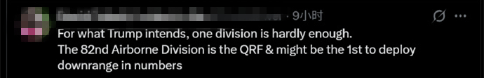 还有人直言:“就特朗普的意图而言,一个师远远不够,第82空降师很可能成为首批大规模部署战区的部队。”