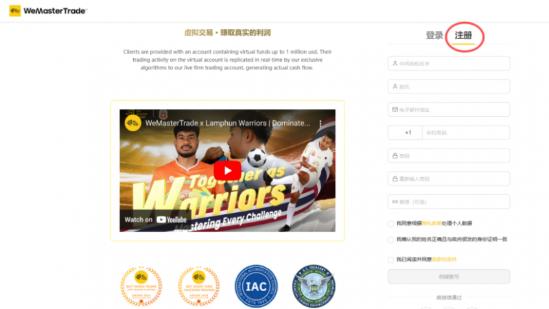 1. 打开WeMasterTrade官网(https://wemastertrade.com/zh/),点击右上角“登陆”,点击“注册”。