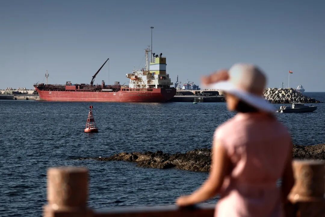 3月7日,阿曼马斯喀特,一艘油轮停泊在海上。伊朗此前封锁了霍尔木兹海峡。(图源:路透社)