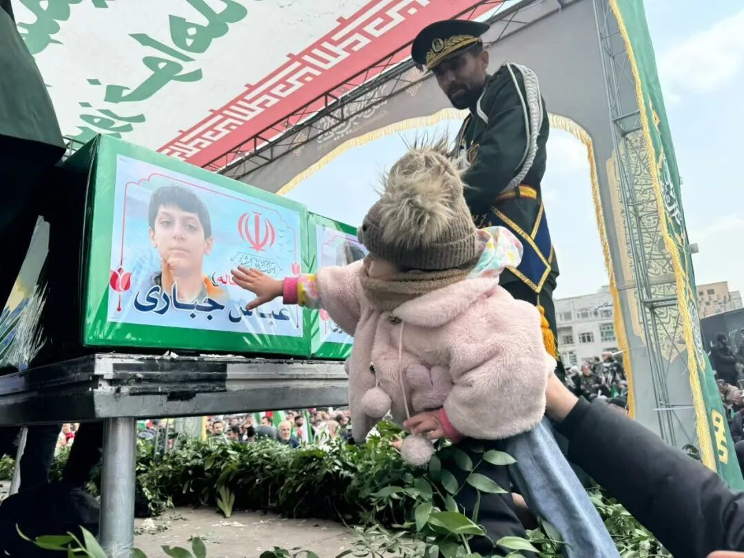 我们在现场等待。人们逐渐从四面八方涌向革命广场。战争已经进入了第十二天,这也是战争爆发以来,伊朗首次为战争中的遇难将领举行的大规模公开葬礼。我看到载有灵柩的车开始慢慢驶入广场。数十个棺木,上面有儿童的照片,也有伊朗武装力量总参谋长穆萨维,革命卫队总司令帕克普尔,最高领袖顾问、前最高国家安全委员会秘书沙姆哈尼,伊朗国防部长纳希尔扎德的照片。数万民众身着黑衣,为烈士送行。
