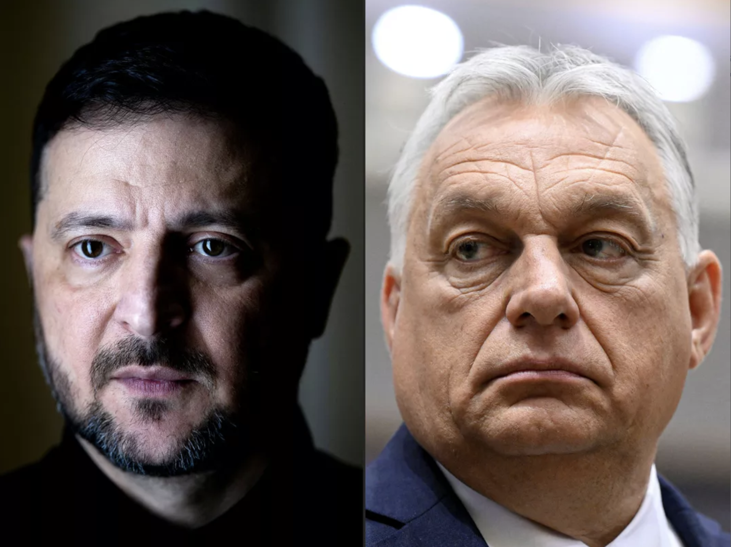 ▲乌克兰总统泽连斯基(左)和匈牙利总理欧尔班