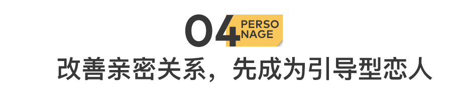 在伴侣治疗中,有个概念叫“powerful partner”,意思是对伴侣产生影响的一方,类似于网上流行的“引导型恋人”。如果你想改善伴侣关系,可以自己先做powerful partner,当然最好的状态是伴侣双方均为引导型恋人。