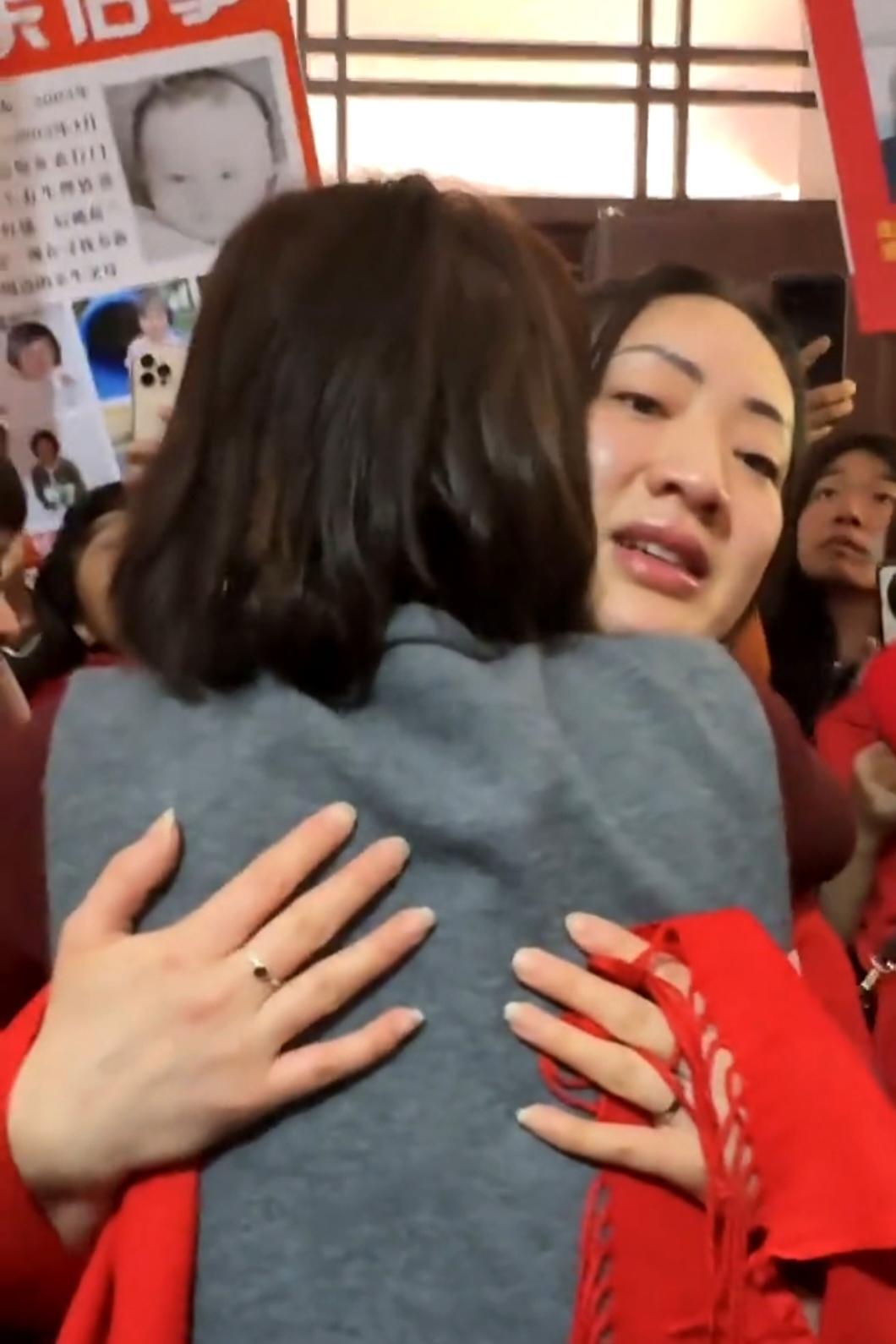 ▲洪杨丽和母亲拥抱,泪如雨下