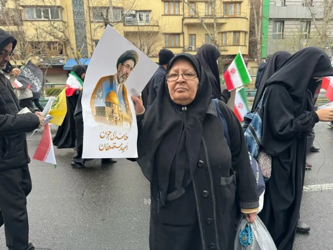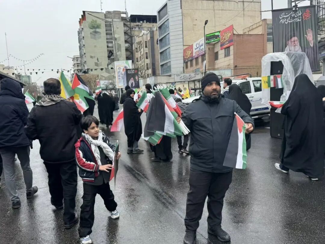 我们开始采访。慢慢地,人越来越多了,从四面八方走来。往年圣城日主要是声援巴勒斯坦,可这一次是在战争中,我明显感觉到现场的口号和气氛,已经不只是“支持巴勒斯坦”,还带着一种战时动员的意味。反美、反以、支持政府、抵抗侵略,这样的声音明显更高。很多人都在喊,要狠狠打击美国和以色列,为烈士报仇。