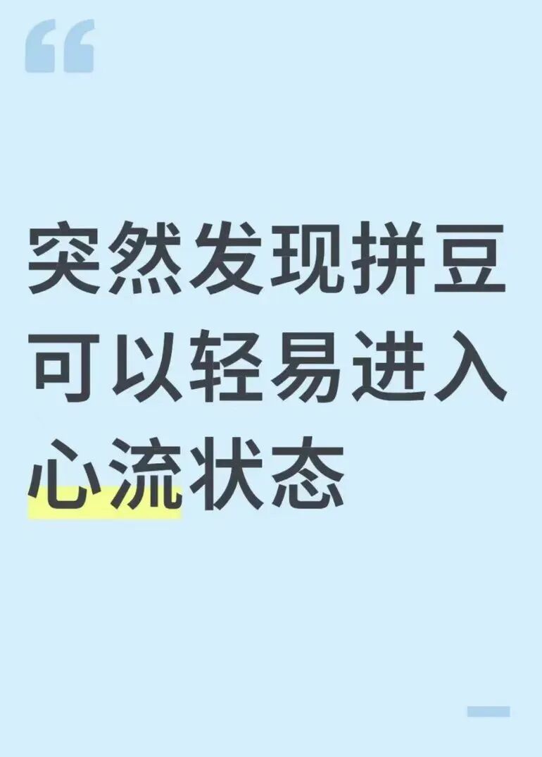 平常在工位上坐两个小时就腰酸背痛的当代年轻人,一拼起豆来,腰也不酸了,脖子也不疼了,原生家庭也不痛了,生活压力统统不见了。