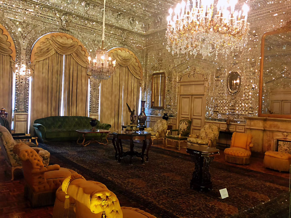 德黑兰古列斯坦宫(又称玫瑰宫),有一座大厅由数万块镜片拼嵌装饰,光彩璀璨,被称为镜厅。可惜的是,在刚刚3月3日它被美以导弹冲击波震碎。