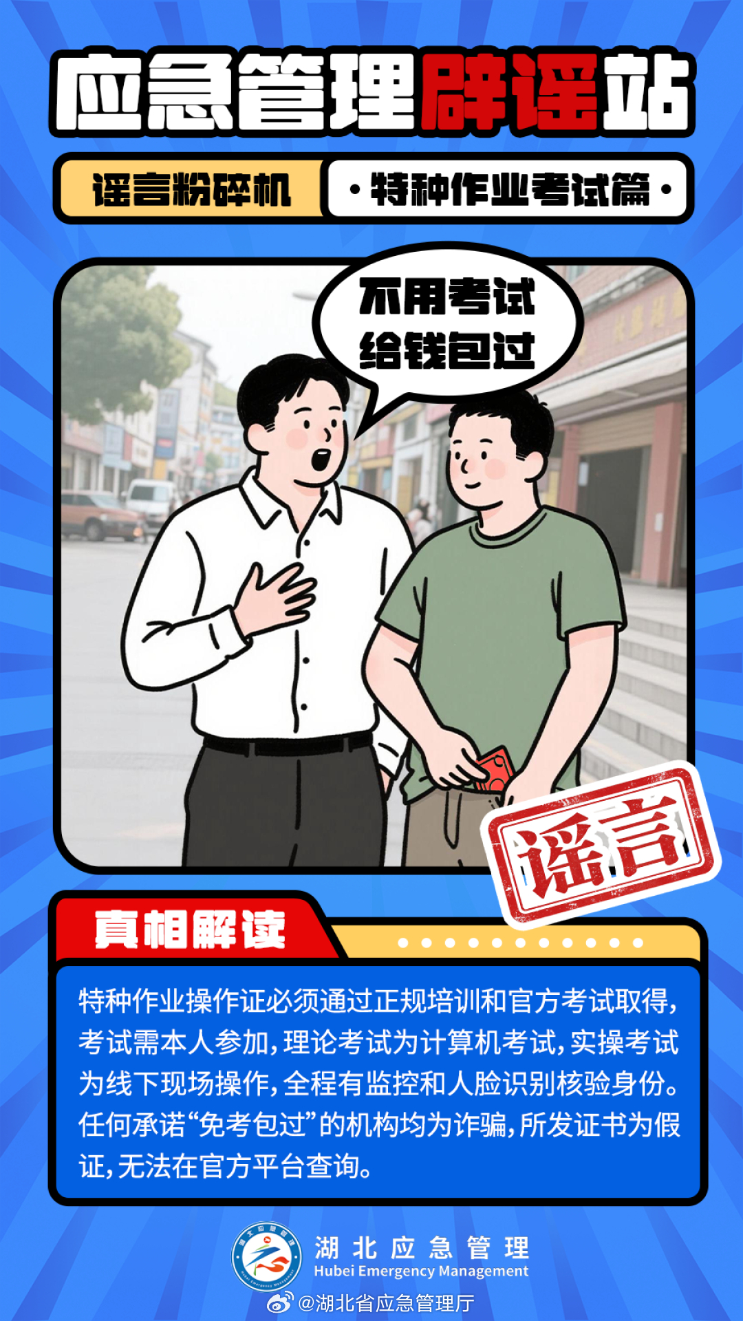 “特种作业操作证,不用考,交钱就行!”——你见过这样的宣传吗?听起来省事,实则危险重重!“花钱买证”、“考试包过”,全是骗局!不仅证书无效,更可能让你陷入法律风险,甚至埋下安全事故的隐患!今天是“3·15”国际消费者权益日,打假不止于商品,更关乎安全与责任。楚小应带您一起打假关于“特种作业操作证”的这些虚假宣传↓↓↓