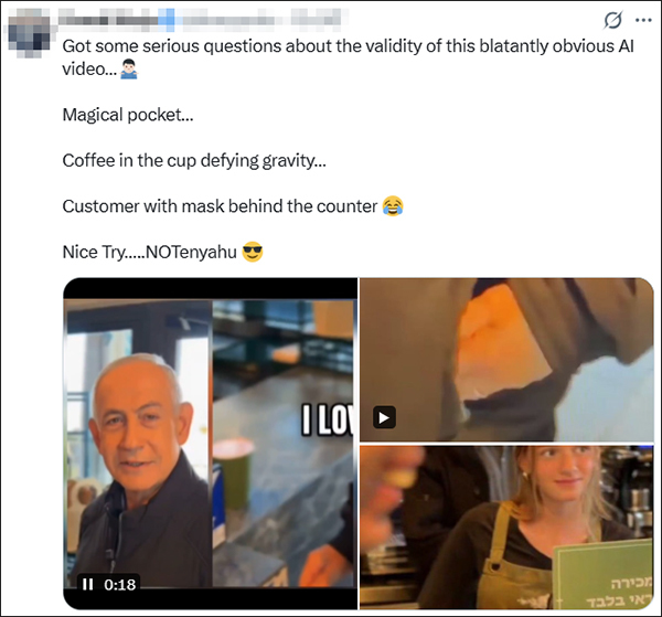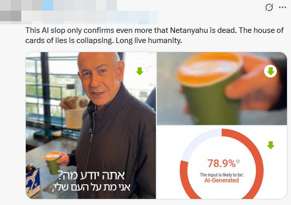 近日,有传言称内塔尼亚胡在伊朗的报复袭击中死亡,还有传言称内塔尼亚胡3月12日的记者会视频是由人工智能(AI)生成的,因为模糊的视频中曾出现似乎一只手“有六根手指”的画面。