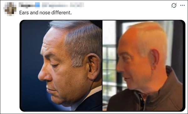 还有网友把视频画面和内塔尼亚胡资料图作对比,称耳朵和鼻子不一样。