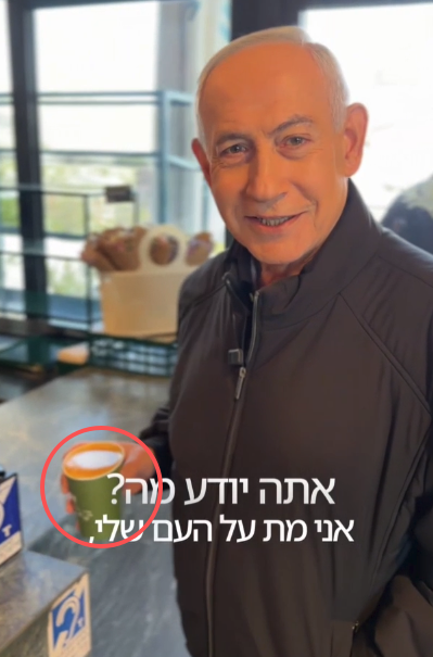 视频中的内塔尼亚胡,还喝了口咖啡,并可见喉部有吞咽动作。但有网友发现,杯子居然还是满的。
