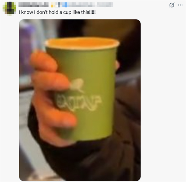 有网友提出其端咖啡杯的姿势不寻常。“我知道我不这样拿杯子。”“没有人类会像这样端着咖啡杯。”