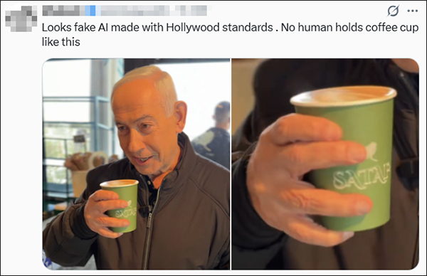 不过,也有小部分网友为视频的真实性辩护,解释部分被指出的“疑点”。关于液面没有下降的问题,辩护者认为,咖啡非常烫,内塔尼亚胡只是小啜了一下。