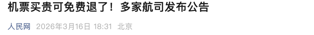 3月13日,国航发布公告,通过“中国国航”APP及“中国国际航空”小程序购买国航国内航线单程直达客票的旅客,若在国内任一销售渠道为同一乘机人再次购得同一行程票价更低的客票,可在规定时间内,为符合条件的原客票申请免费退票。
