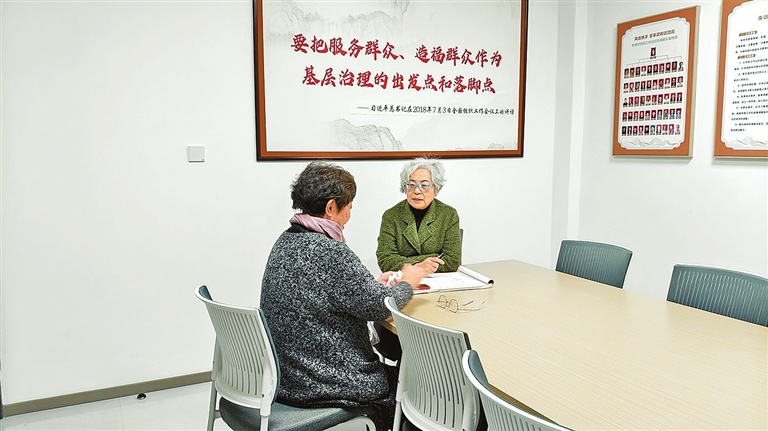 安忠杰(右)开展家事调解,用心倾听群众诉求,守护邻里和谐。