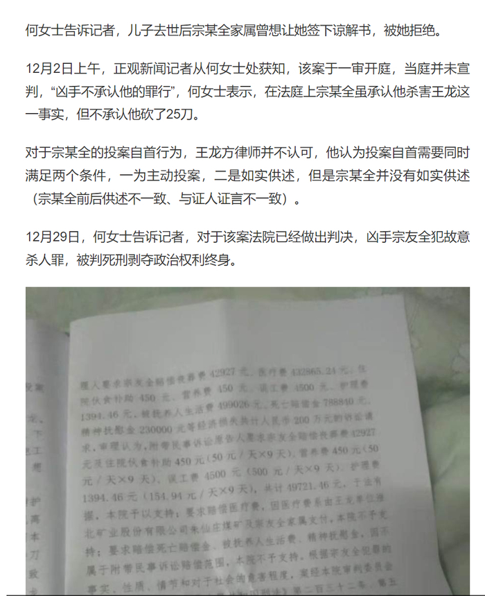 2021年12月30日,正观传媒公司又以《追踪 | 安徽男子拒绝与前妻复婚遭前岳父砍杀身亡凶手被判处死刑》为题,报道了该案的一审进展情况。正是因为这篇报道,被宗某某的家属宗某静等人将正观传媒公司告上法院。