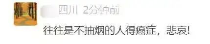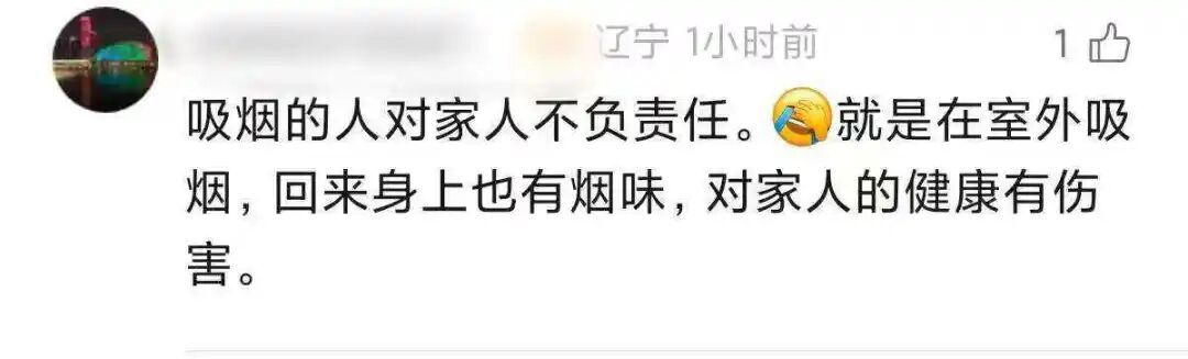 有网友感慨:“往往是不抽烟的人得癌症,很悲哀!”也有网友直言,吸烟是“对家人不负责任”“伤害家人健康”。不少人呼吁“希望国家立法不在公共场所吸烟”,还有网友分享自己的经历,称为了家人“已经成功戒烟5个月”。