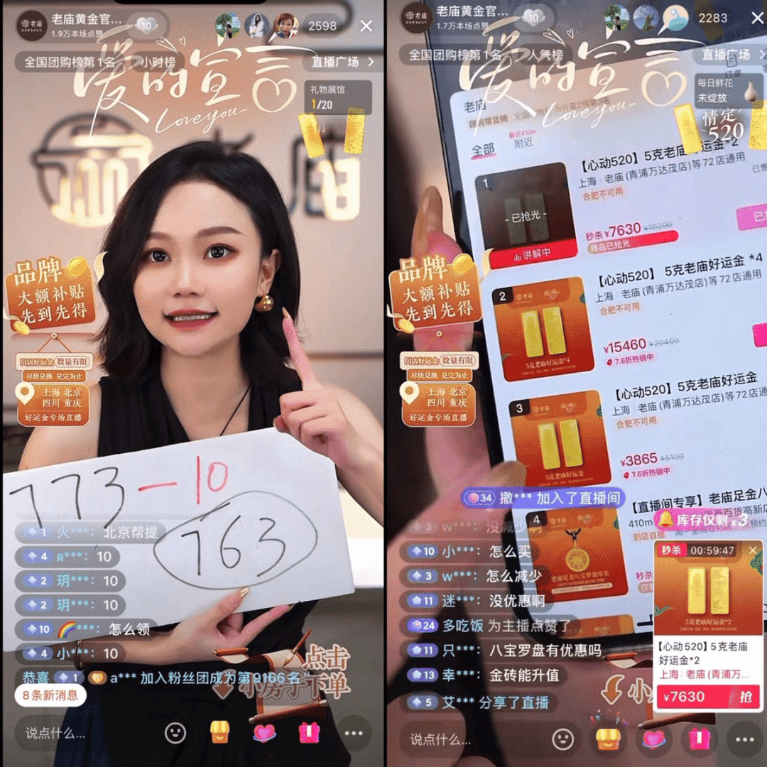 直播间不再只是卖衣服、讲话术,黄金也开始批量上架:
