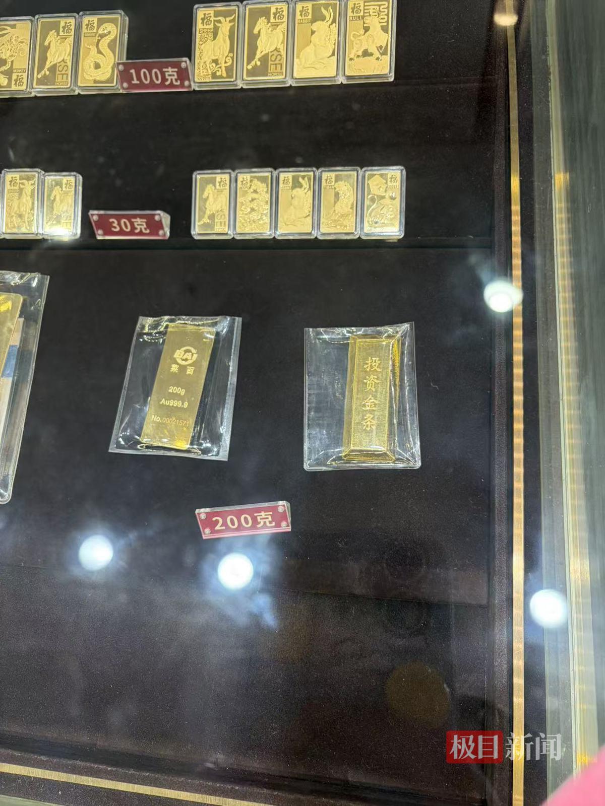 “给我开一张100克的单子。”柜台前时不时有爽快下单200克金条、100克金条的顾客。开票、付款、验货,走完购买流程后,立刻装好金条离开。还有不少顾客来到现场后不停和家人电话、微信沟通到底买多少合适。