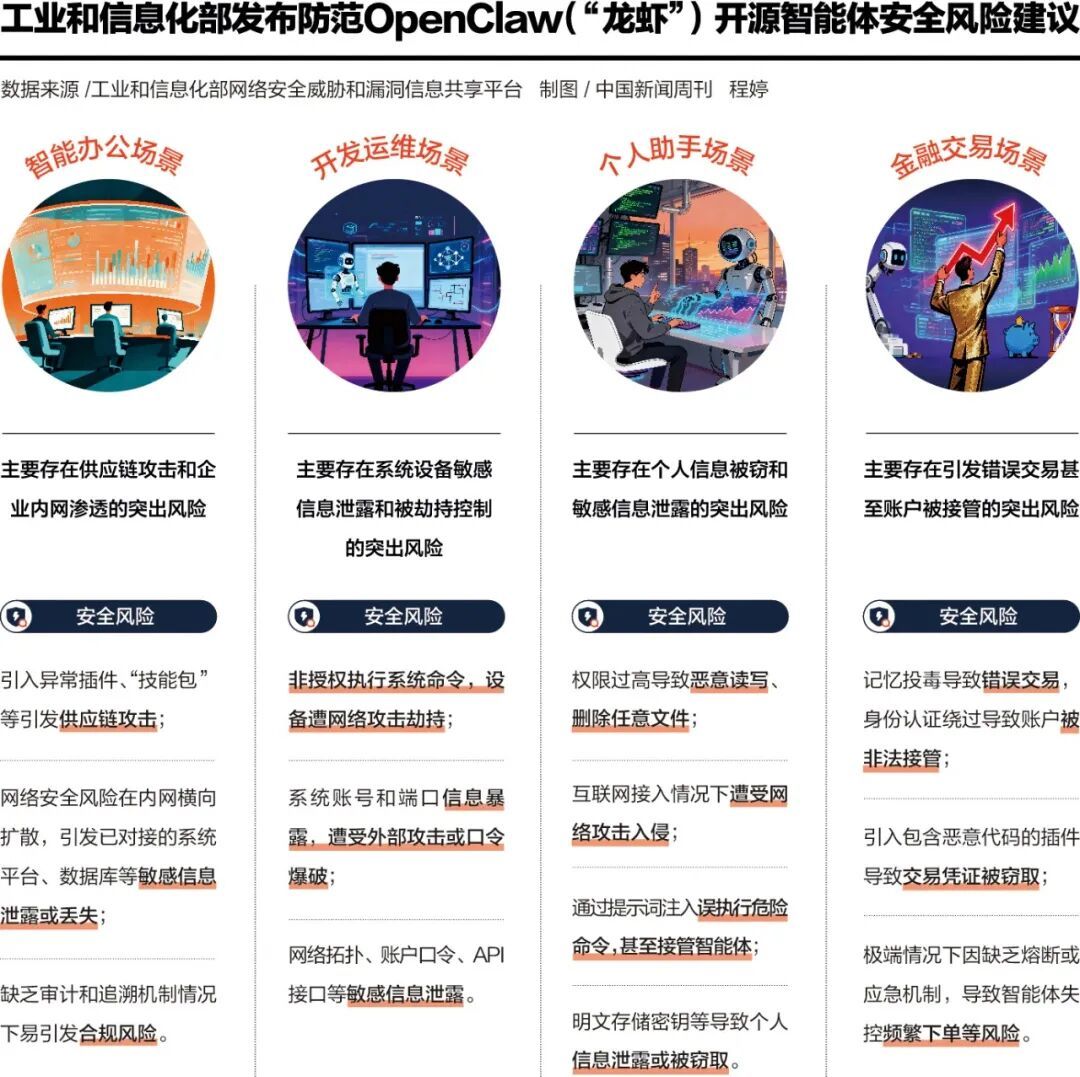 目前,不少高校、地方政府和金融机构已开始明确禁用OpenClaw,并呼吁“不制造焦虑、不鼓吹神话”。如何安全“养龙虾”,是当前“龙虾全民热潮”中更值得补齐的一课。