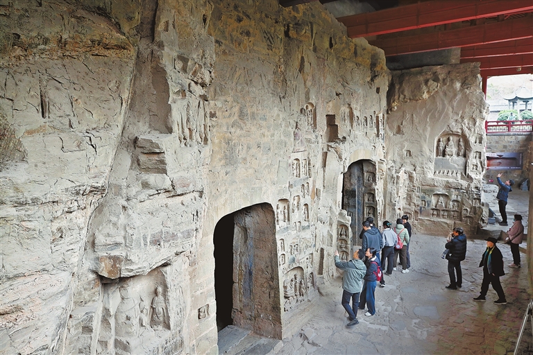 巩县石窟是北魏皇家开凿的大型石窟之一(3月17日摄)。