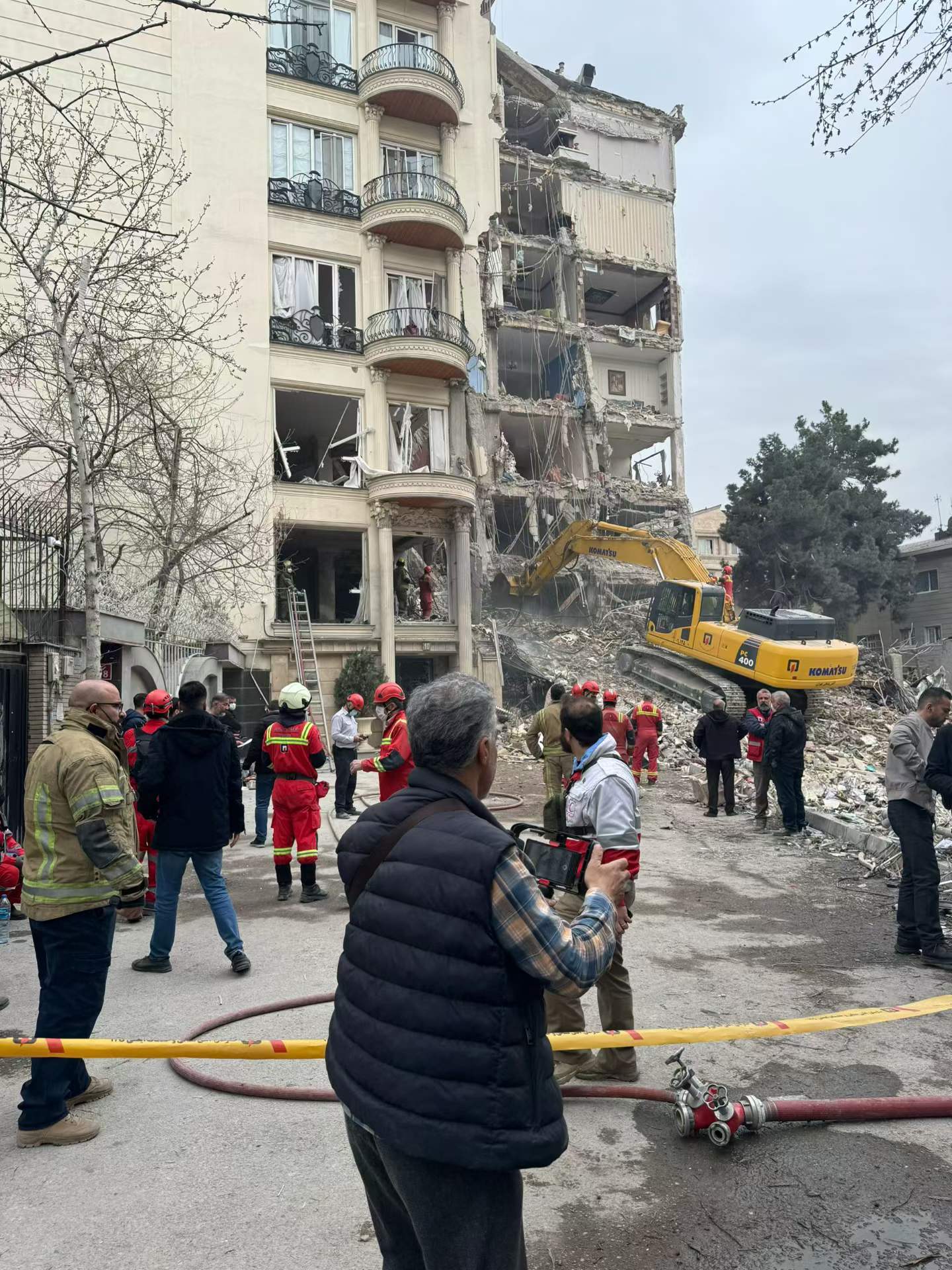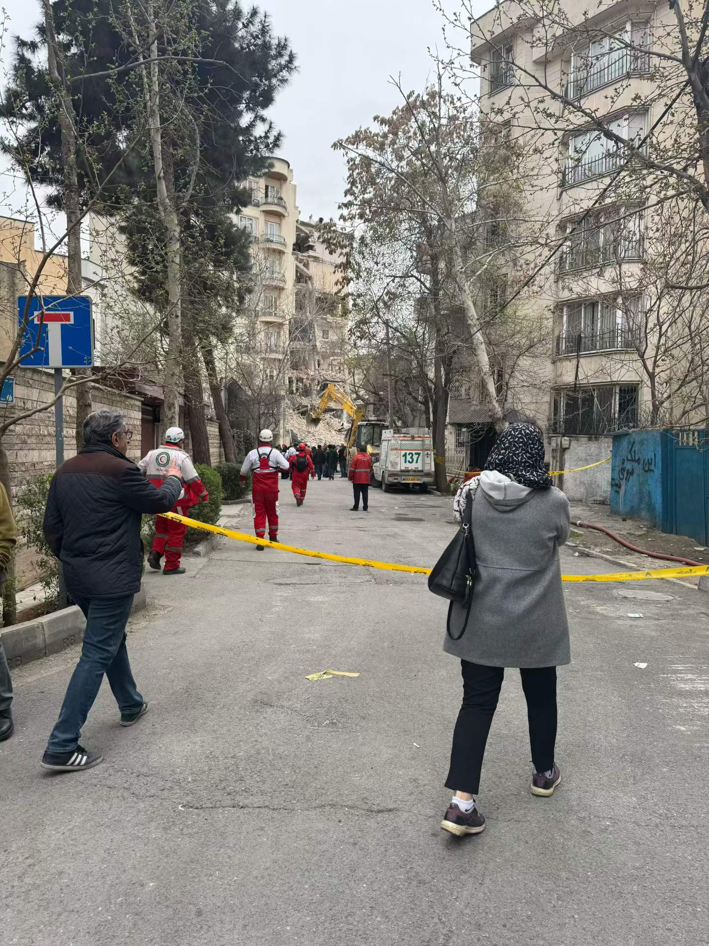 今早凌晨五点(2026年3月23日)一个导弹发射导致德黑兰北部andarzgo地区一幢九层楼房垮了一半,很多人还被埋在废墟之中,亲人在旁边悲痛万分看着救援人员在瓦砾中寻找,我在现场感到无比难过。