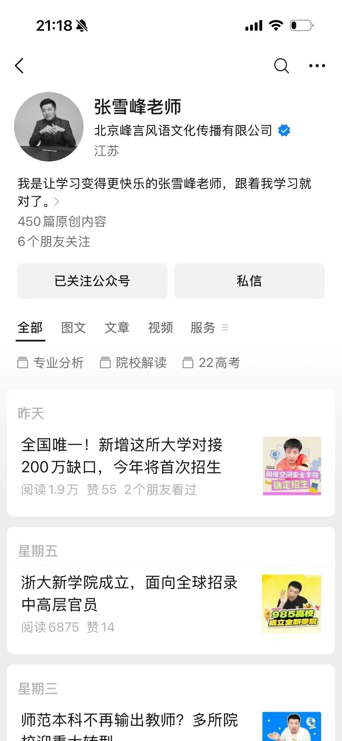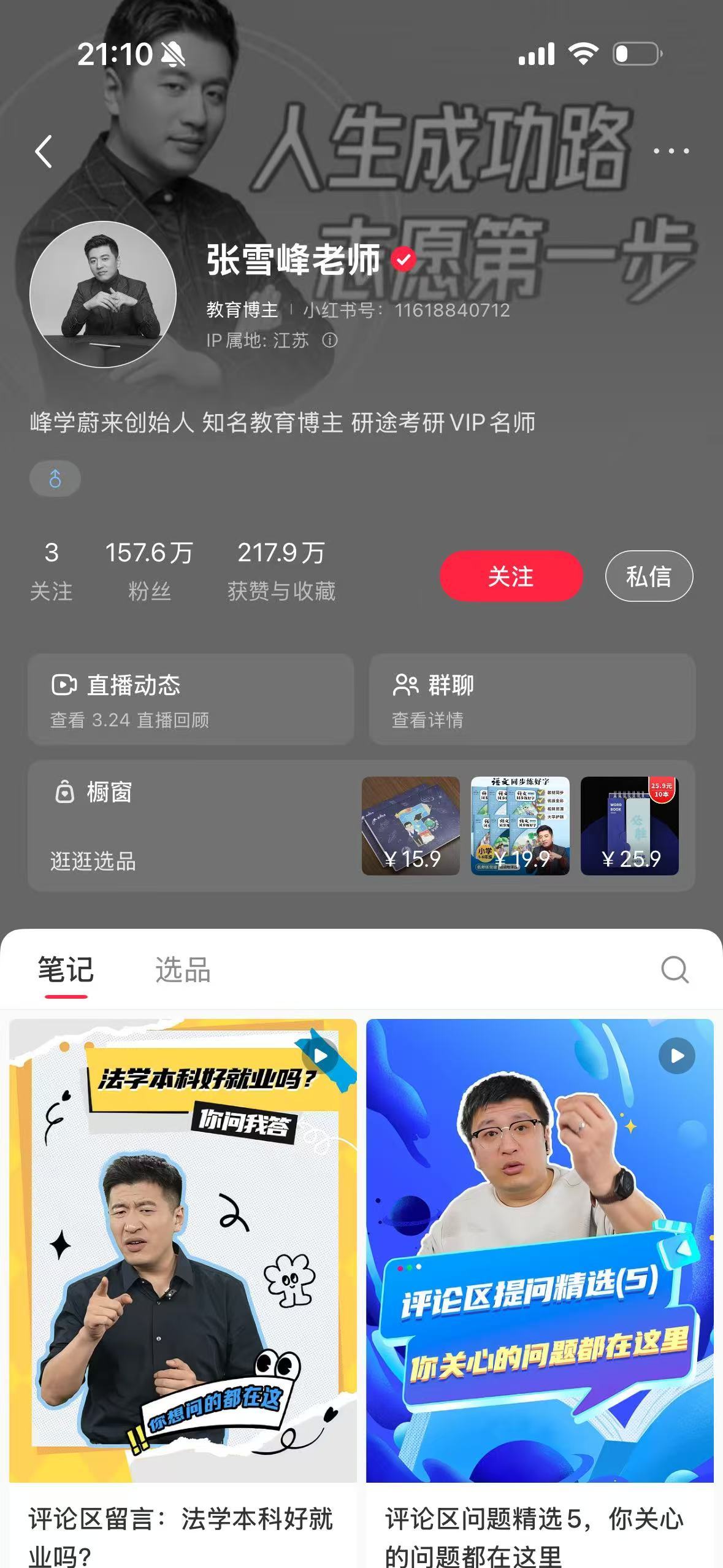 张雪峰抖音、小红书、b站、微信公众号平台账号截图。