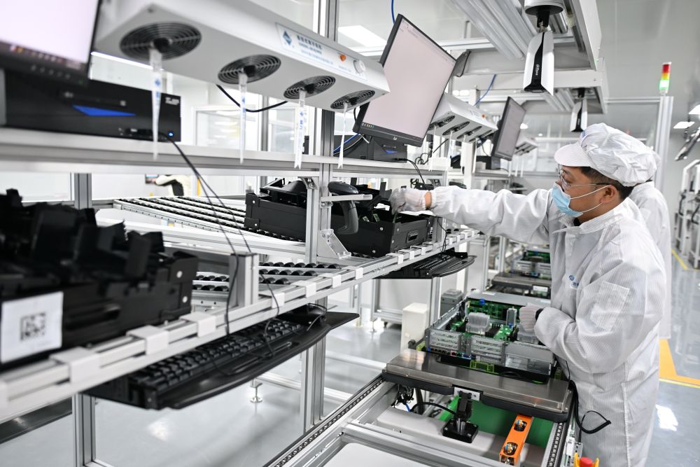 2026年3月11日,在雄安科创中心中试基地,雄安百信信息科技有限公司工人在服务器生产线上工作。
