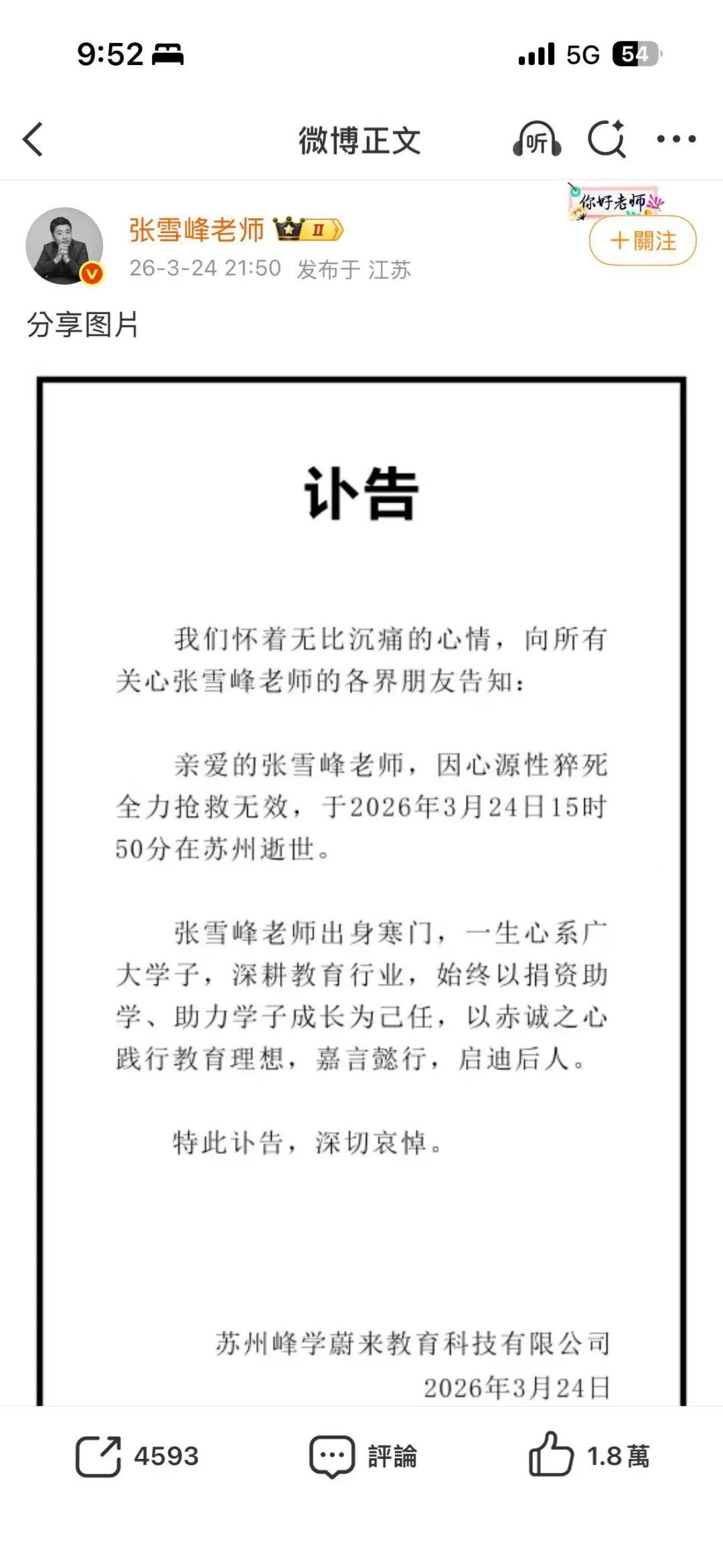 央视报了,张雪峰,就是在公司的跑步机上,把自己跑进了急救室。