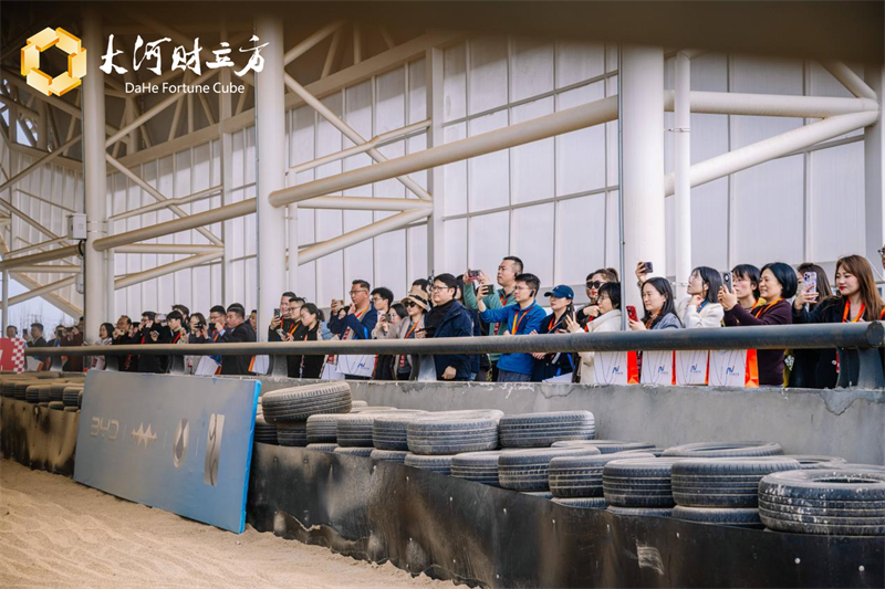 随后,观展者移步比亚迪赛车场,体验迎来高潮。作为国内首批新能源汽车全地形赛车场,这里拥有八大特色场景。其中,“悬天沙坡”无疑是全场的视觉与感官巅峰。观展者站在坡顶两侧,看着仰望U8冲向坡面,细密沙粒猛然抛向半空,让观展者不仅感受到电动越野的磅礴势能,还看到了中国汽车工业的突破。“这简直是现实版的速度与激情。”观展者纷纷发出感叹,并拿出手机拍下这一瞬间。