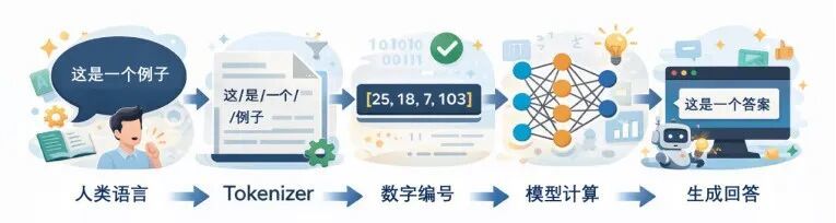 如果你愿意把它想象得更具象一点,tokenizer 就像海关安检机。人类说出一句完整的话,进门时先被拆包、扫描、分类、编号,然后才进入系统内部流转。你在外面看到的是“我说了一句话”,模型内部发生的却是一场高密度的信息物流。
