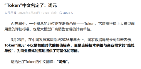 值得注意的是,在人民日报等公开报道里,它被明确写成了“词元”;在国新办发布会上,国家数据局局长也直接说出了“Token,也就是词元”这句话。一个技术圈常用的英文词,正在以中文名字进入更广泛的公共表达。