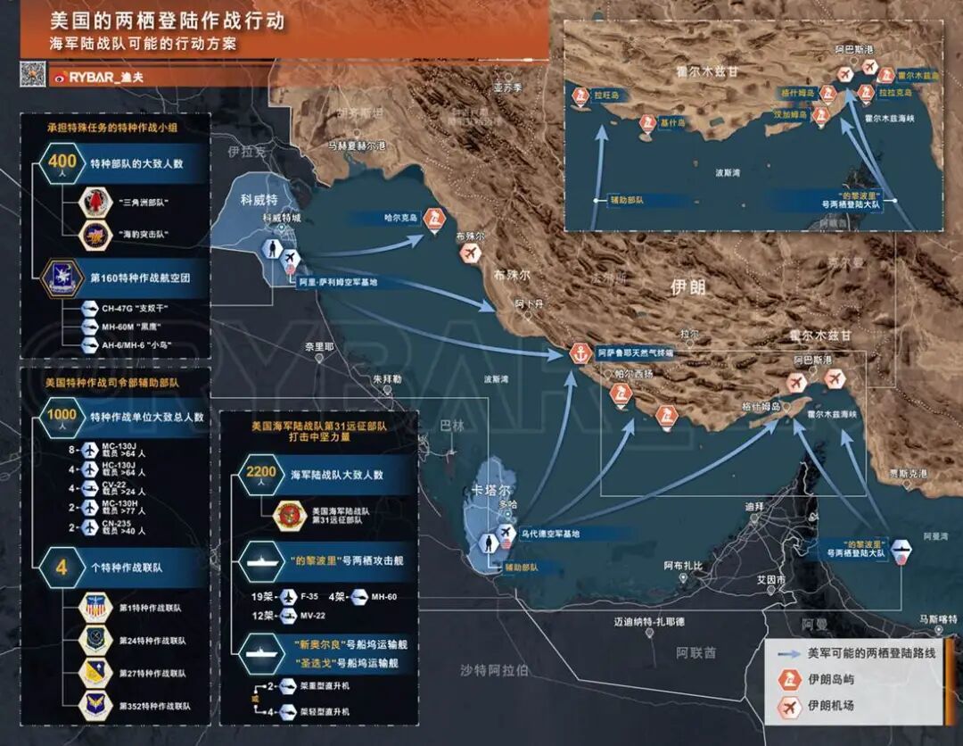 更为危险的信号是:美军第82空降师(1个营乃至1个旅)、2个两栖登陆群、相当比例的航空特种部队,都在向中东集结。