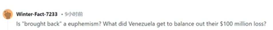 “‘带回来’是委婉的说法吗?委内瑞拉得到了什么来弥补他们损失的1亿美元?” ↓