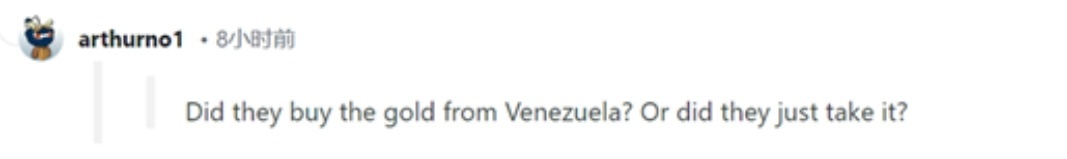 有网友对美方说法表示疑问,“他们是从委内瑞拉购买的黄金吗?还是直接拿走了?” ↓