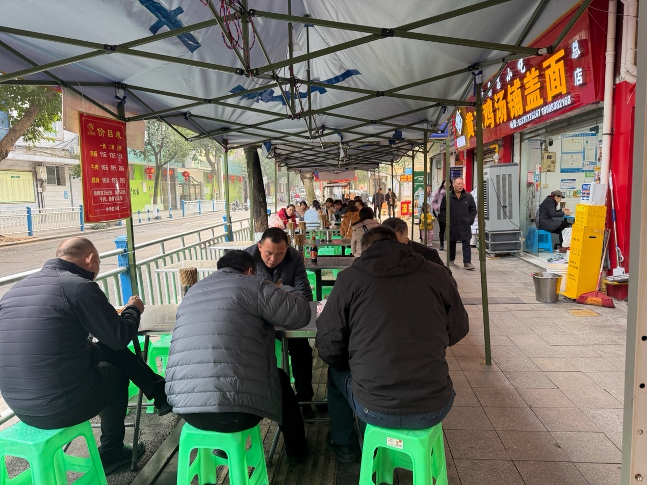 2026年1月27日早上,黄二鸡汤铺盖面馆外的食客。