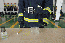 ▲消防员在一个加入大量香水的透明盒子中放入点燃的纸条,香水遇明火后瞬间被引燃。