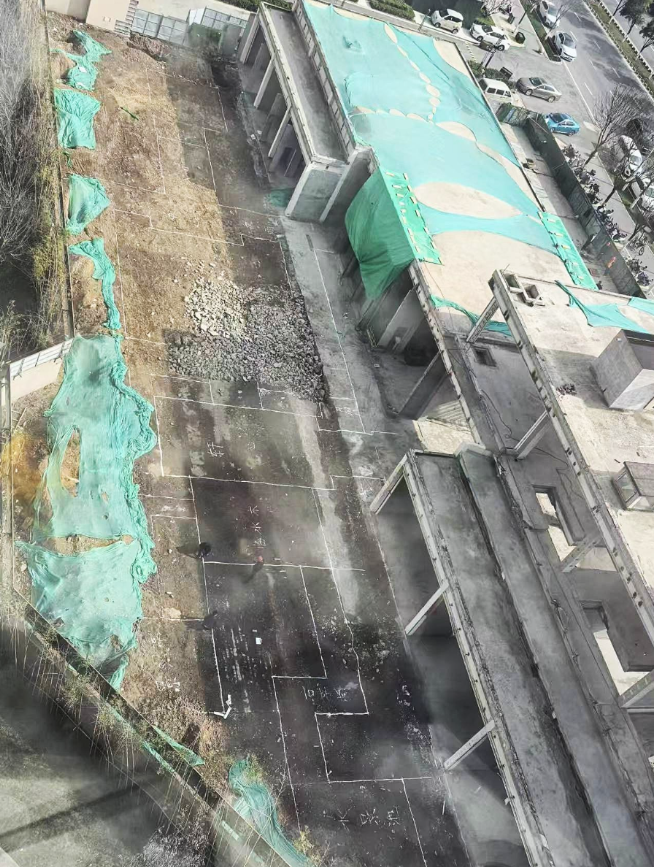对照业主们提供的31号建筑之前作为售楼部时该区域的照片,以及后来该区域在建设前各个阶段的照片,这番建设工程规模不小。其中有一张照片明显可以看出,在第三进花园内进行了比较大规模的混凝土浇筑施工。