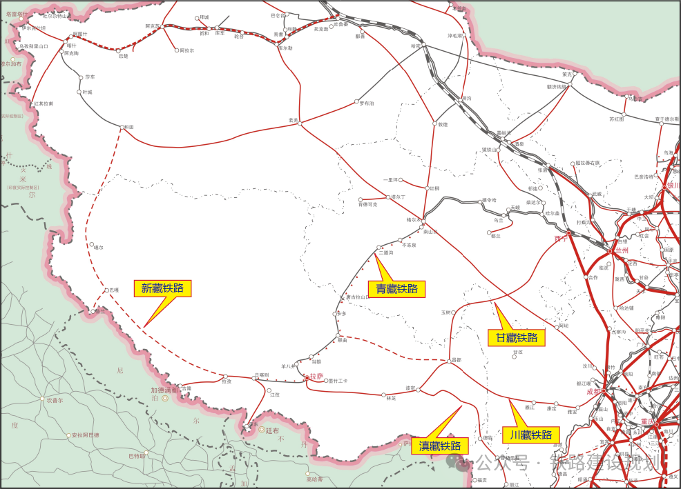 国家中长期铁路规划入藏铁路示意图