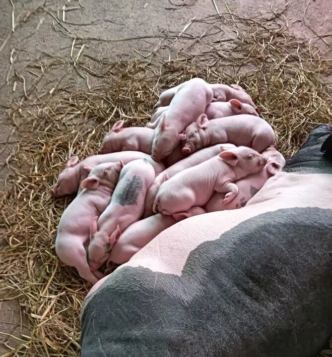 李树全家的母猪产下了小猪崽,他和理理在微信上分享了这件事。 受访者供图