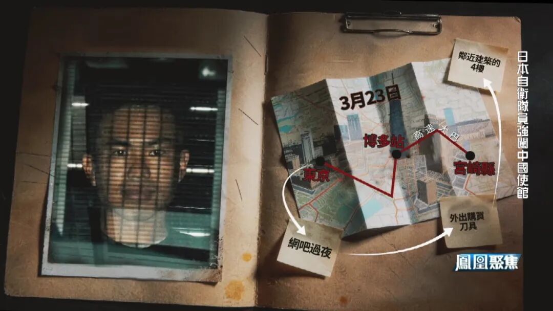 顺着日本警方还原的轨迹往前看,这起事件的危险性还在上升。据多家媒体披露,3月23日,事发前一天中午,村田请假离开陆上自卫队驻地宫崎县,跨越上千公里。到达东京,第二天清晨,村田外出购买刀具,随后前往中国驻日使馆附近,最终借道邻近建筑的4楼,翻越有刺铁丝网侵入使馆。这并不像一起临时起意的街头冲动事件,而是呈现出较为清晰的目标指向和行动安排。