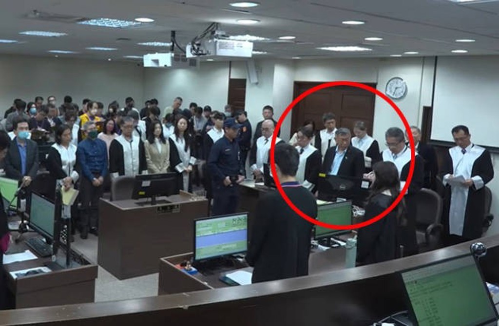 柯文哲听到自己罪名及刑期时,转头看向律师郑深元。