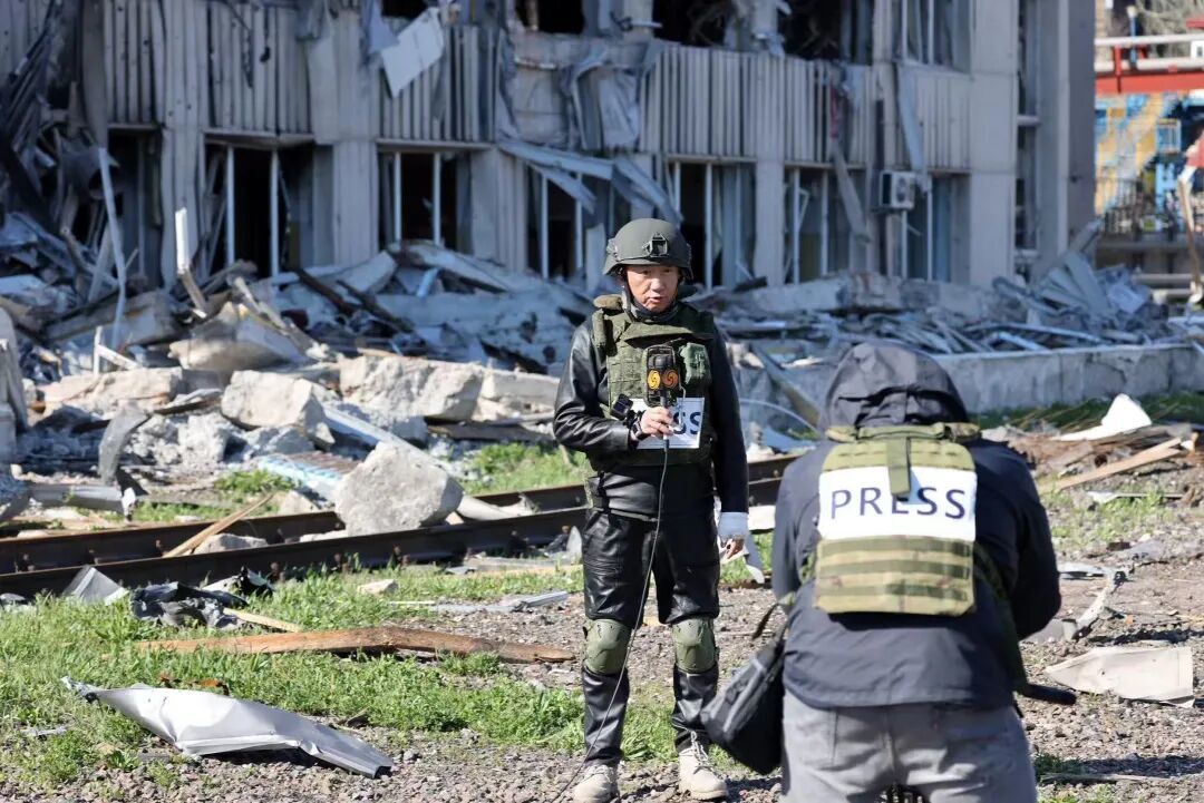 △2024年5月,卢宇光与凤凰卫视摄影师萨维在乌克兰东部顿涅茨克行政区巴赫穆特市进行采访。