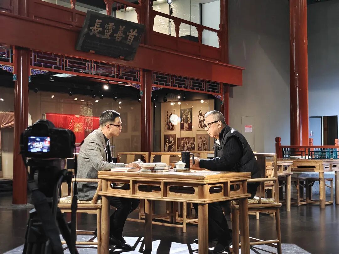 △2021年12月,首都博物馆梨园展厅。凤凰卫视中文台《文化大观园》栏目专访时年81岁的《大宅门》导演郭宝昌(已故)。
