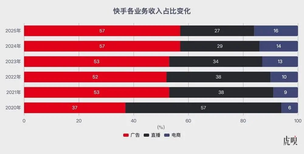 作为流量驱动型平台,快手广告、电商、直播三大变现业务的根基,是用户规模与使用时长;而 2025 年,快手的流量红利已摸到天花板,增长引擎“近乎熄火”。