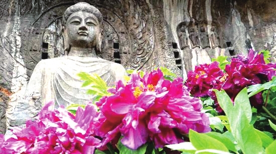 龙门石窟赏牡丹。资料图片