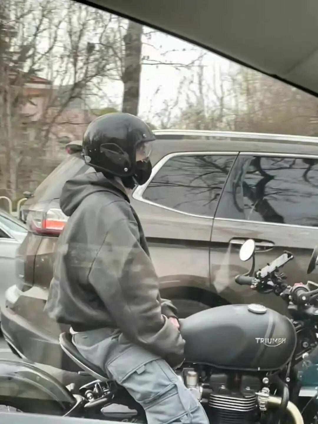 像刘昊然之前骑着一辆黑色 Triumph 在北京街头被偶遇,路人一开始注意到的不是“那是不是刘昊然”,而是“那车真帅”。