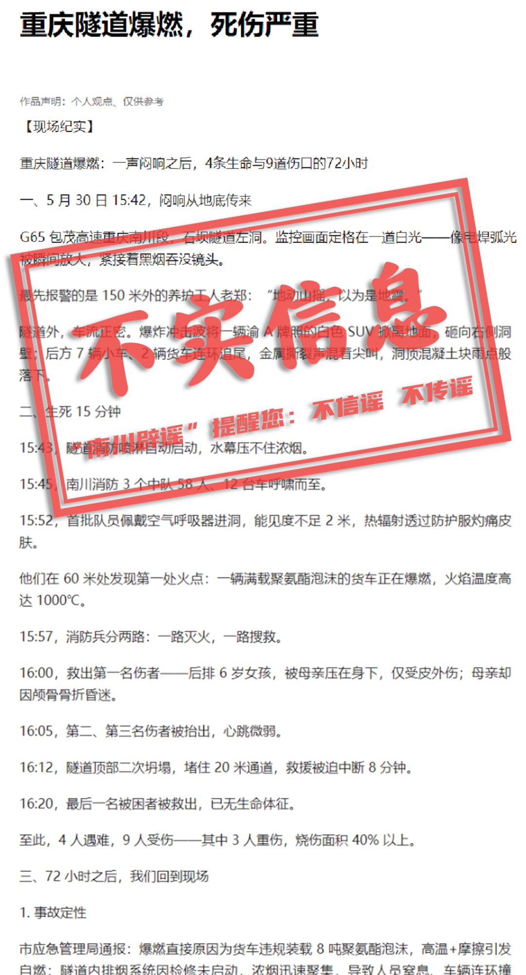 “南川辟谣”提醒
