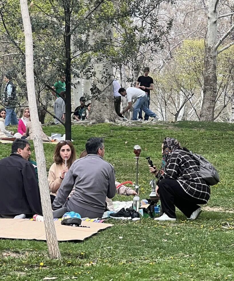 她还说,经过这三十二、三十三天,大家其实某种程度上已经接受了:现实暂时就是这样,战争还在继续,日子也只能这样继续下去。没有人否认已经死了那么多平民,也没有人会说这些苦难不存在。只是很多人现在心里有一种判断:至少今天这种节日,大家聚在公园里,对方不是故意冲着普通人来的,所以人们才敢出来,才敢继续守着自己的风俗。她还拿两伊战争时的情况作比较,说那时候伊拉克如果看到人群聚集,是真会故意往人堆里打的。可现在,很多人之所以还敢在踏青节出来,就是因为他们相信,今天在公园里,不会有人专门往他们头上扔炸弹。