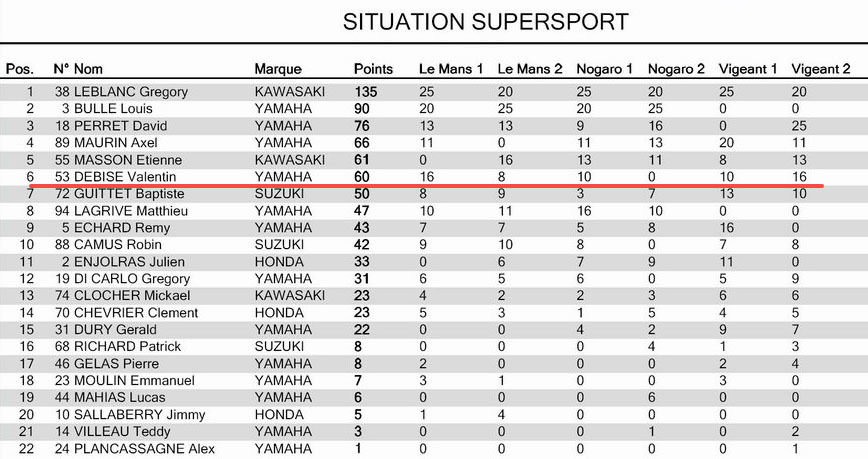 最终,他获得了法国Supersport冠军、Superbike亚军,以及IDM的Supersport亚军、Superbike第五名。