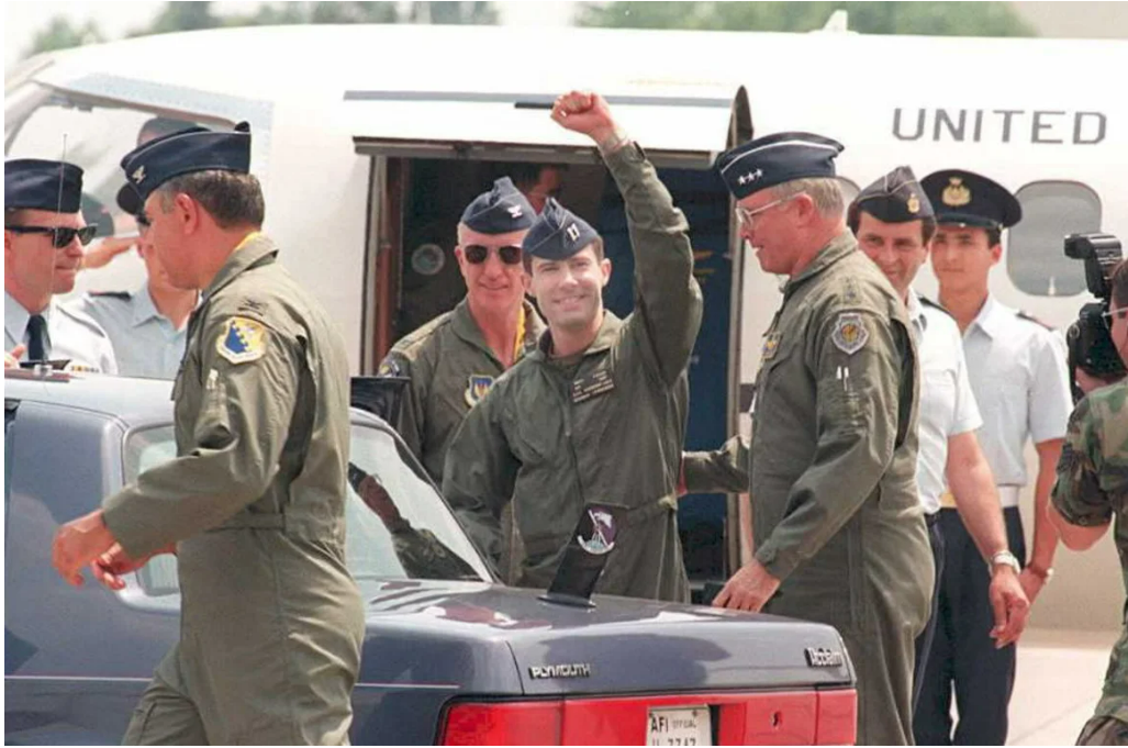 那名飞行员顿时成了“美国英雄”,美国的舆论做了海啸级的报道,克林顿总统邀请他到白宫共进午餐,称赞他代表“美国最好的品质”。他被塑造成“坚韧、勇敢、信仰坚定的美国军人典范”,好莱坞还把他的逃生经历拍成了电影。